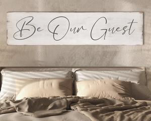 Large antique style Be Our Guest sign with timeless aesthetic.