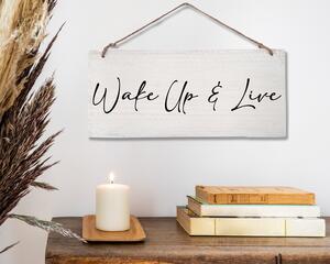 Rustic Minimalist Wake up & Live hanging sign hand-painted on...