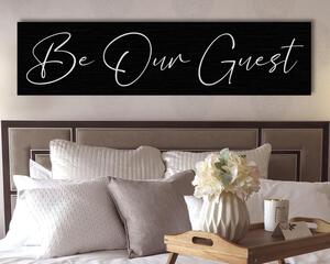 Large antique style Be Our Guest sign with timeless aesthetic.