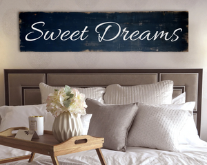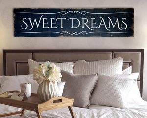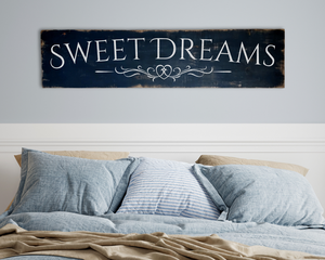 Large antique style Sweet Dreams wood sign. Black & Off-white