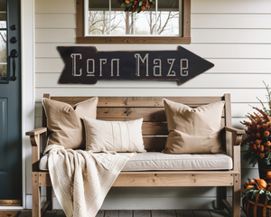 Large antique style wooden arrow shaped Corn Maze sign. Black...