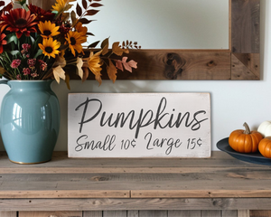 Pumpkins - small 10 cents, large 15 cents. Rustic fall wood s...