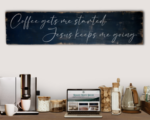 Large antique style wooden coffee bar sign. Coffee gets me st...