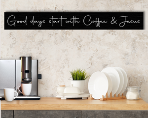 Hand-painted wooden coffee bar sign. Good days start with Cof...