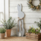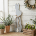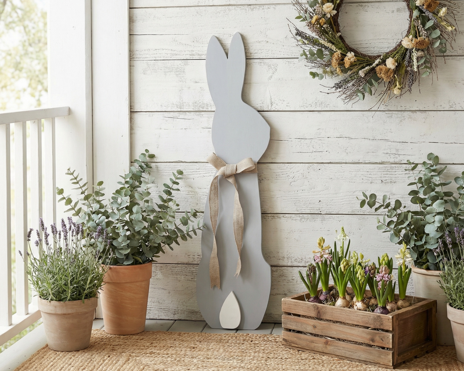 Welcome a touch of seasonal charm to your home with this handcrafted wooden rabbit porch leaner. Made from solid wood, this minimalist design is perfect for those who appreciate simple elegance. Whether placed outdoors on a covered porch or indoors in your entryway, this rabbit adds a cozy vibe to any space. A burlap bow tied around the neck completes the look, lending a delightful touch of texture and warmth. Sturdy and built to last, this rabbit leaner makes a lovely statement piece that celebrates the beauty of understated decor while seamlessly blending into your home’s style.