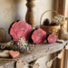 Thick and substantial at approximately .75 to 1 inch thick, these freestanding roses are perfect for shelves, mantels, consoles, tiered trays, or tabletop displays.