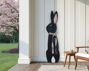 3D detailed wooden porch leaner sitting black rabbit with jut...