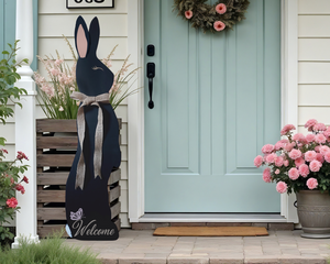 3D detailed wooden porch leaner standing black rabbit with bu...